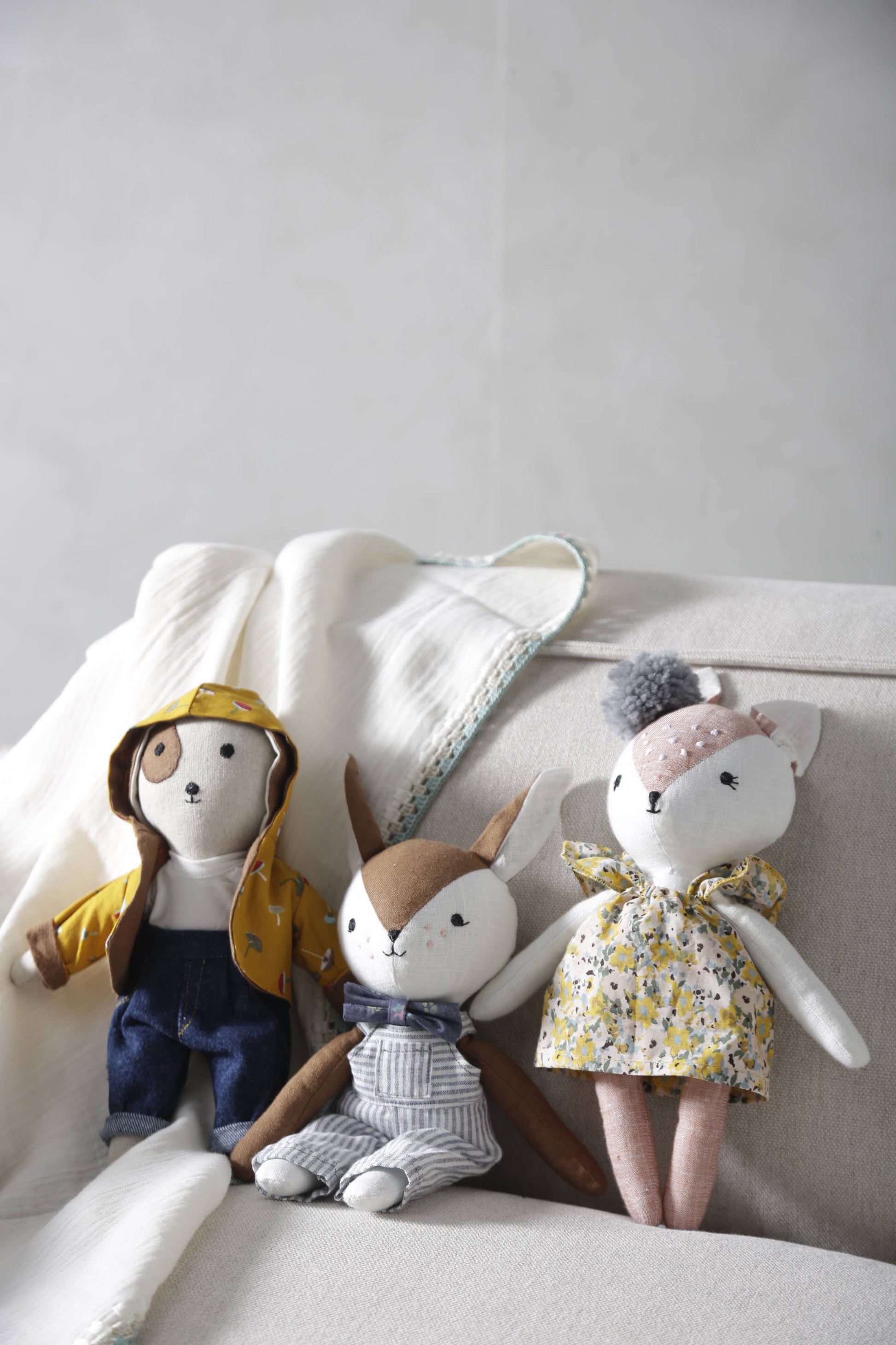 This newly landed beautiful deer Bambi cuddly toy is a lovely handmade product with its beautiful bow tie and linen romper.