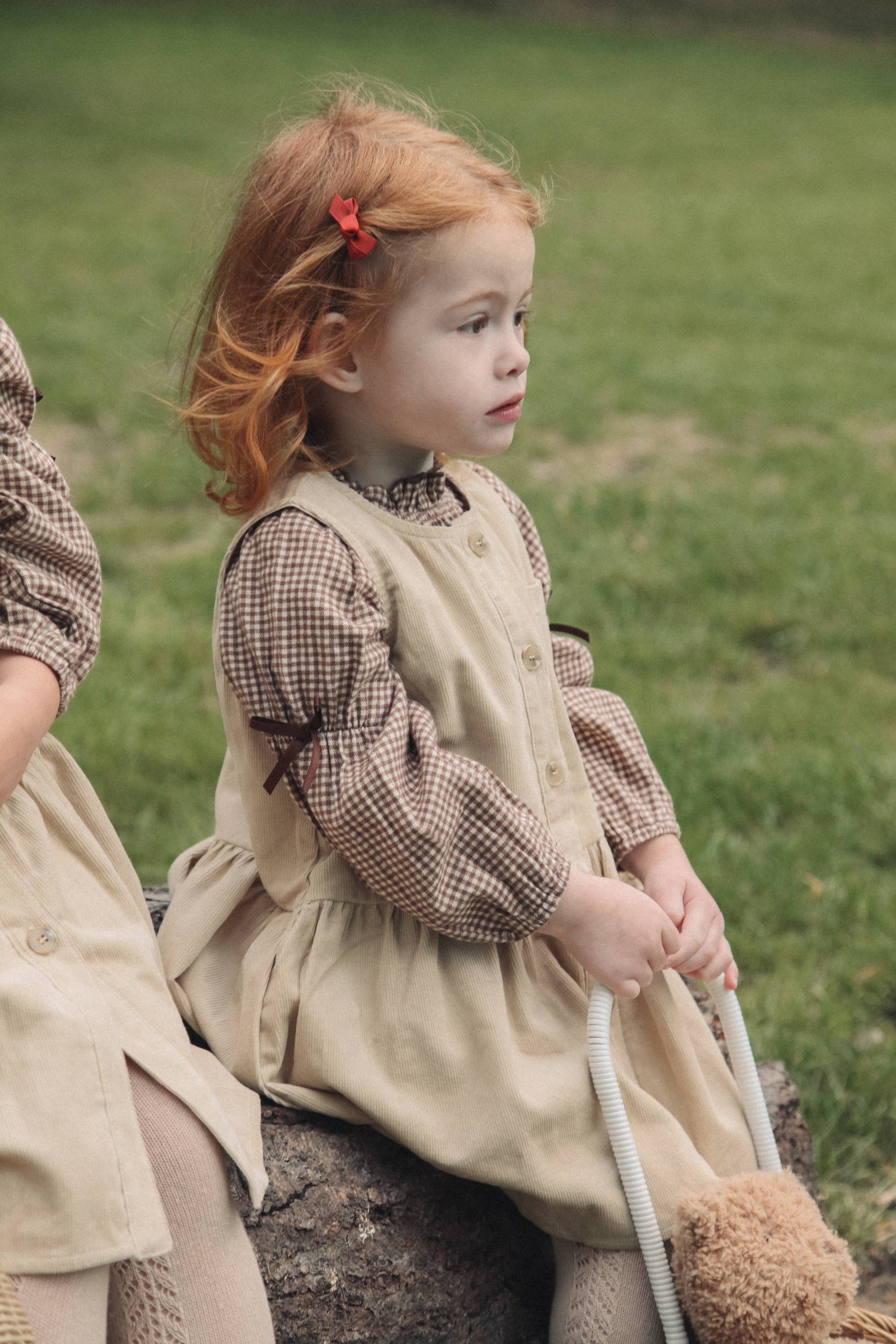 Beige/Cord Frill Pocket Peplum Dress: 3-4y