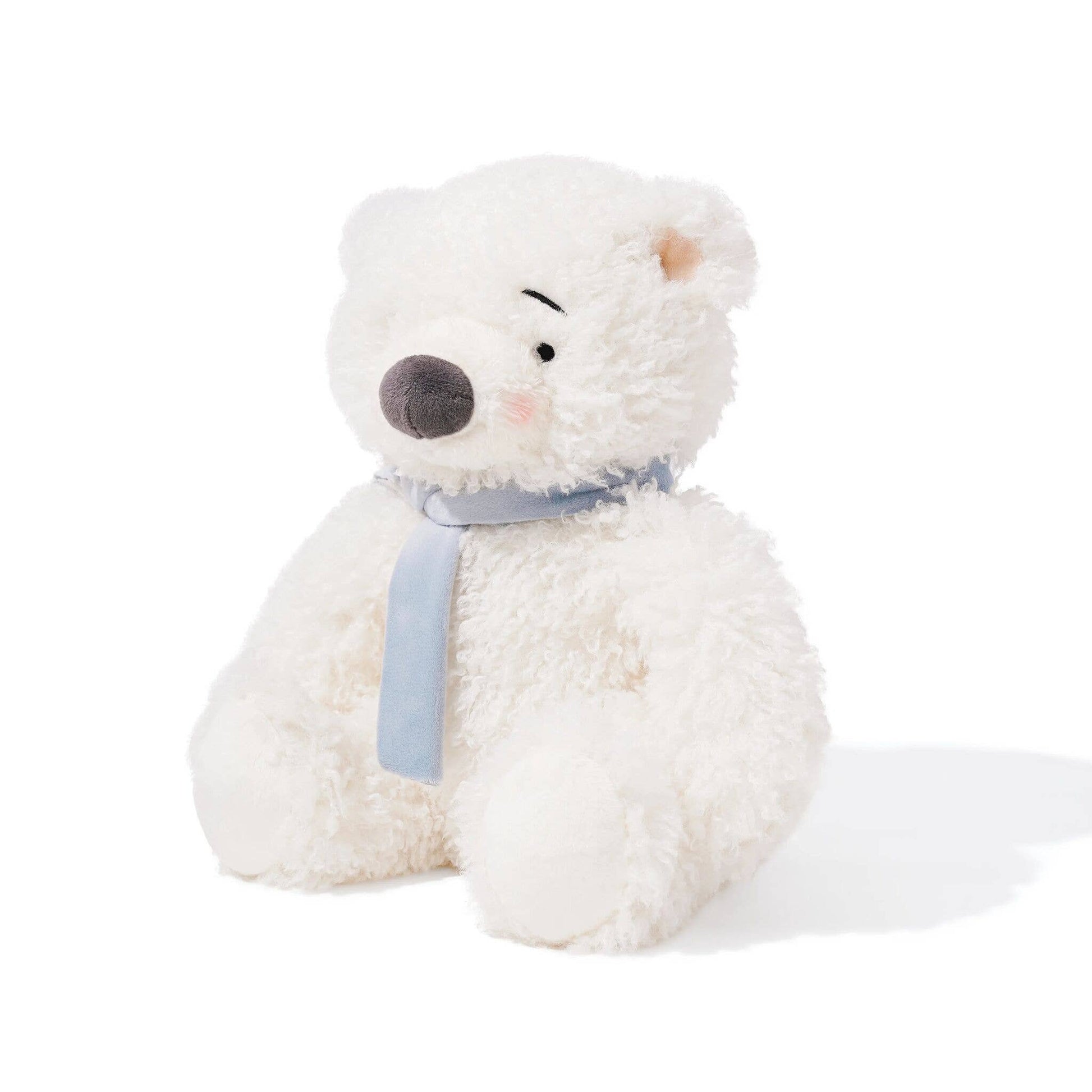 Boris, the cuddliest polar bear you'll ever know! With his luxuriously soft white fur and an adorable blue scarf, Boris is ready to bring a touch of winter magic to your snuggles. Perfect for little hands or as a charming addition to any nursery or gift collection, this plush friend is as huggable as he is lovable