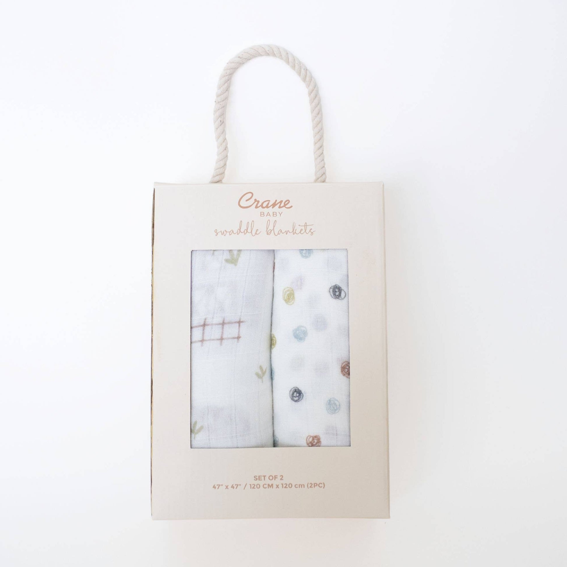 Wrap your baby in countryside comfort with this 2-piece muslin swaddle set. One blanket features a playful tractor and farmhouse print while the other offers a timeless dot pattern, both in soft, earthy hues. Made from 100% cotton muslin, these breathable blankets are perfect for swaddling, nursing, stroller rides, or snuggles at home. A charming and practical gift for any new parent.