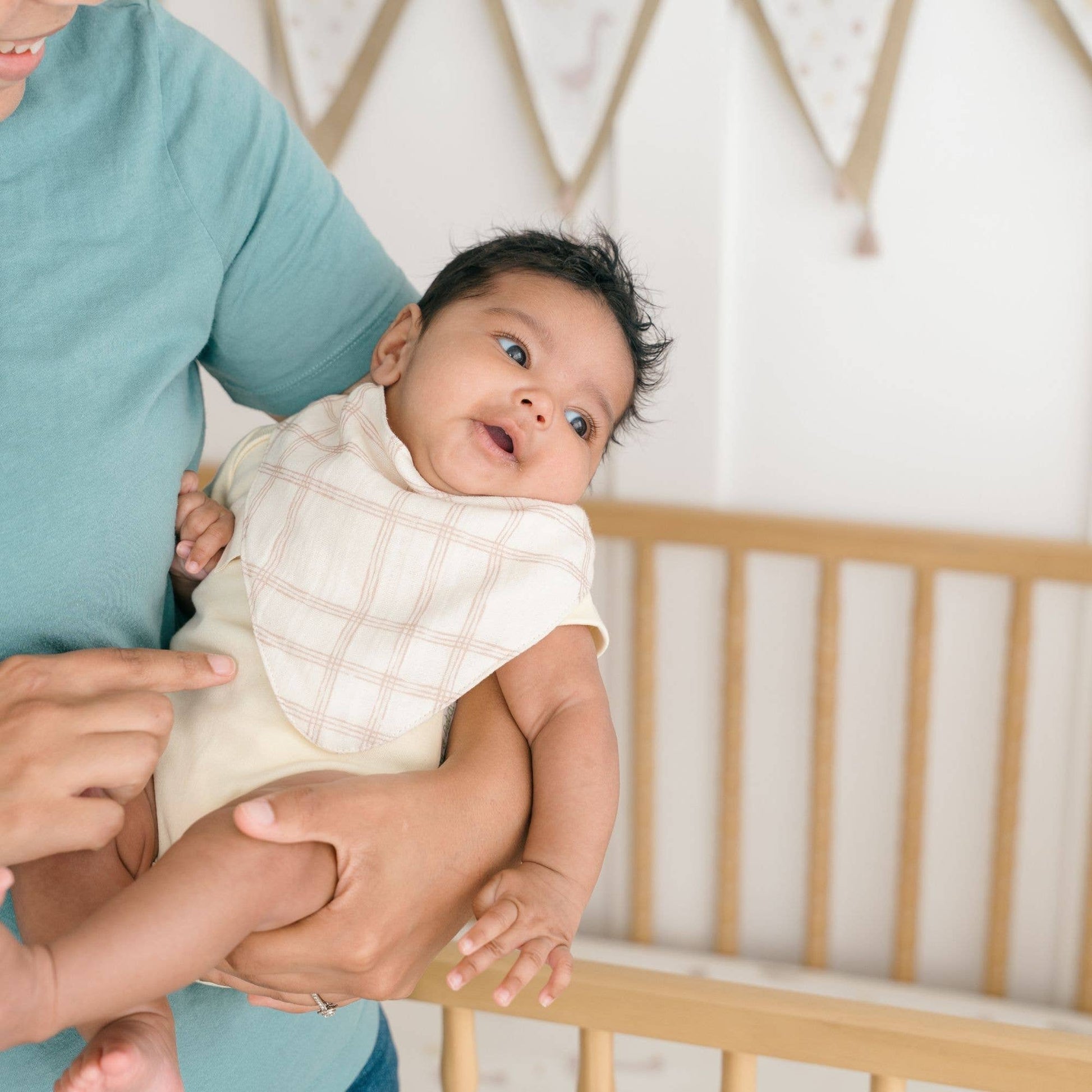 This trio of bandana-style bibs features a mix of sweet goose prints and complementary plaid and polka dots. Soft, breathable cotton muslin and adjustable snaps ensure a comfy fit that grows with your baby. Stylish enough for everyday wear, practical enough for all the dribbles.