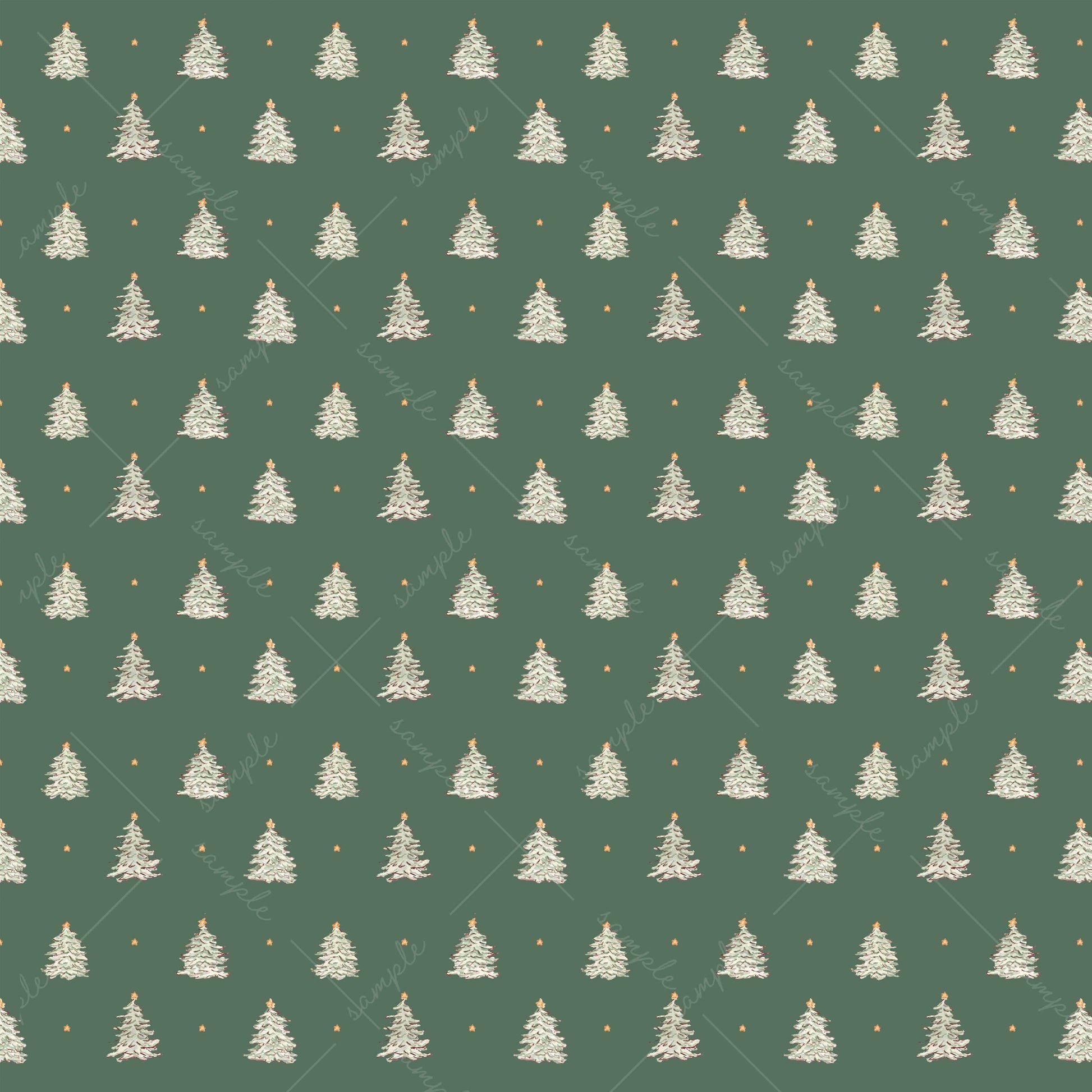 This classic holiday design is part of our Christmas 2025 collection 'Etoile', a repeating pattern of tiny pine trees, topped with stars, on a deep juniper background.