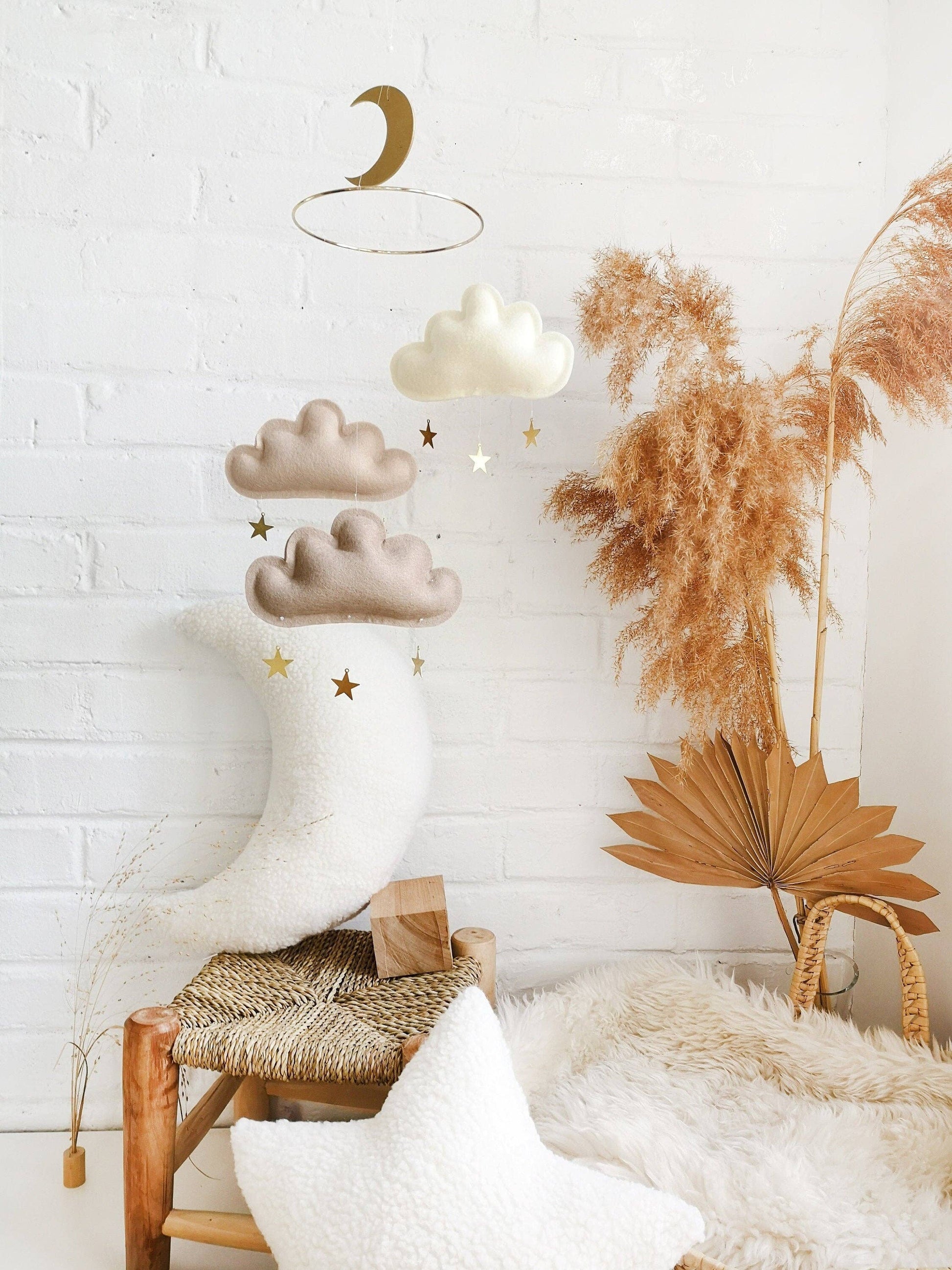 This felt cloud mobile with gold drops is an ideal birth gift. A shower of poetry for your children's decoration!