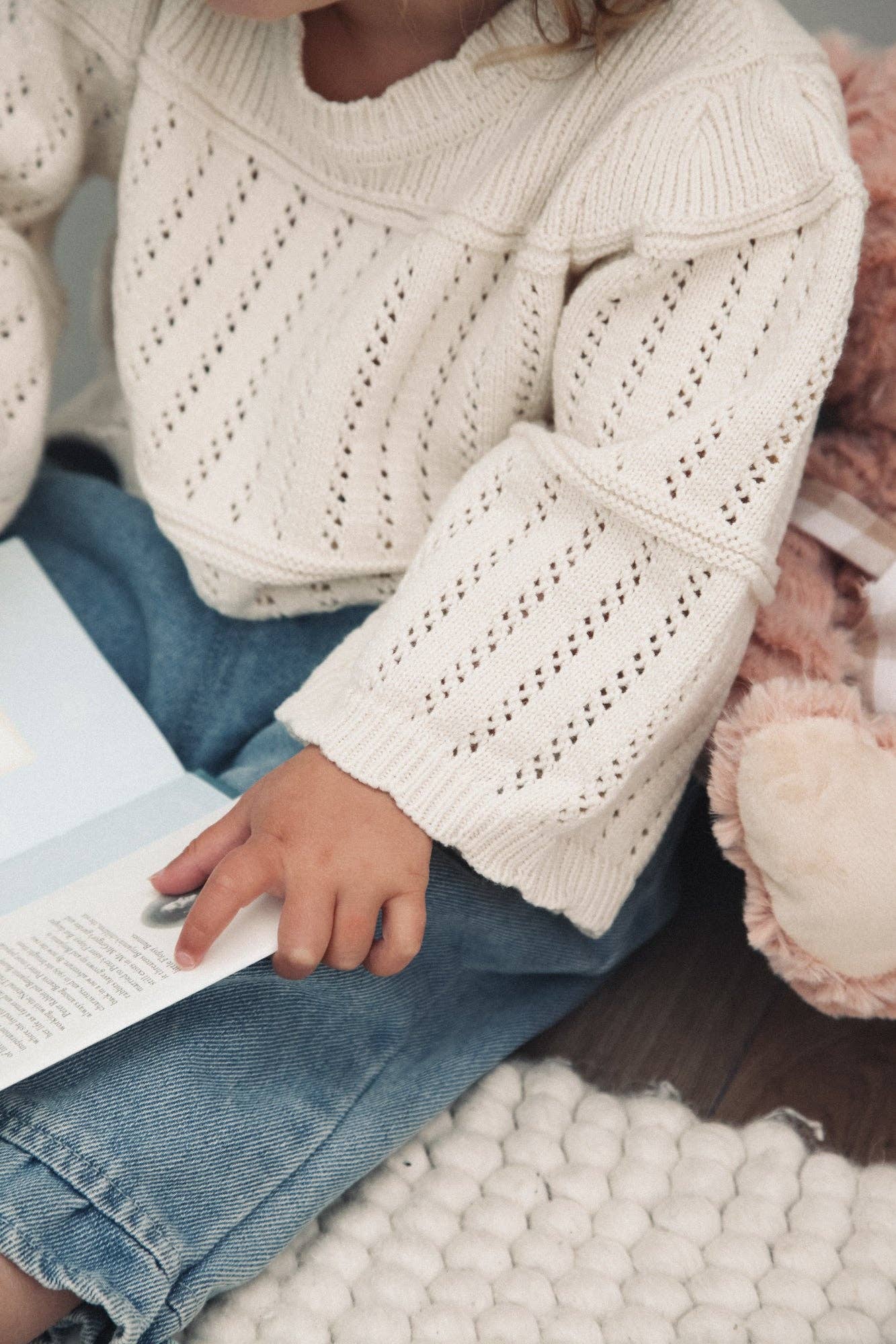 Cream Cotton Flare Sleeve Knit Jumper: 18-24m