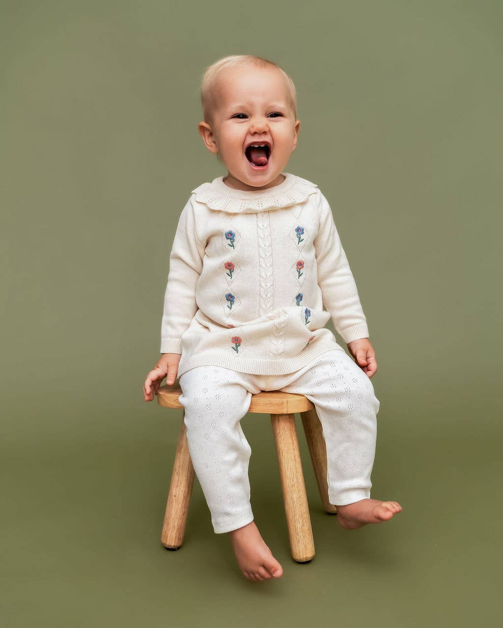 Emma Floral Embroidered Knit Baby Ruffle Dress (Organic): Natural / 12-18M
