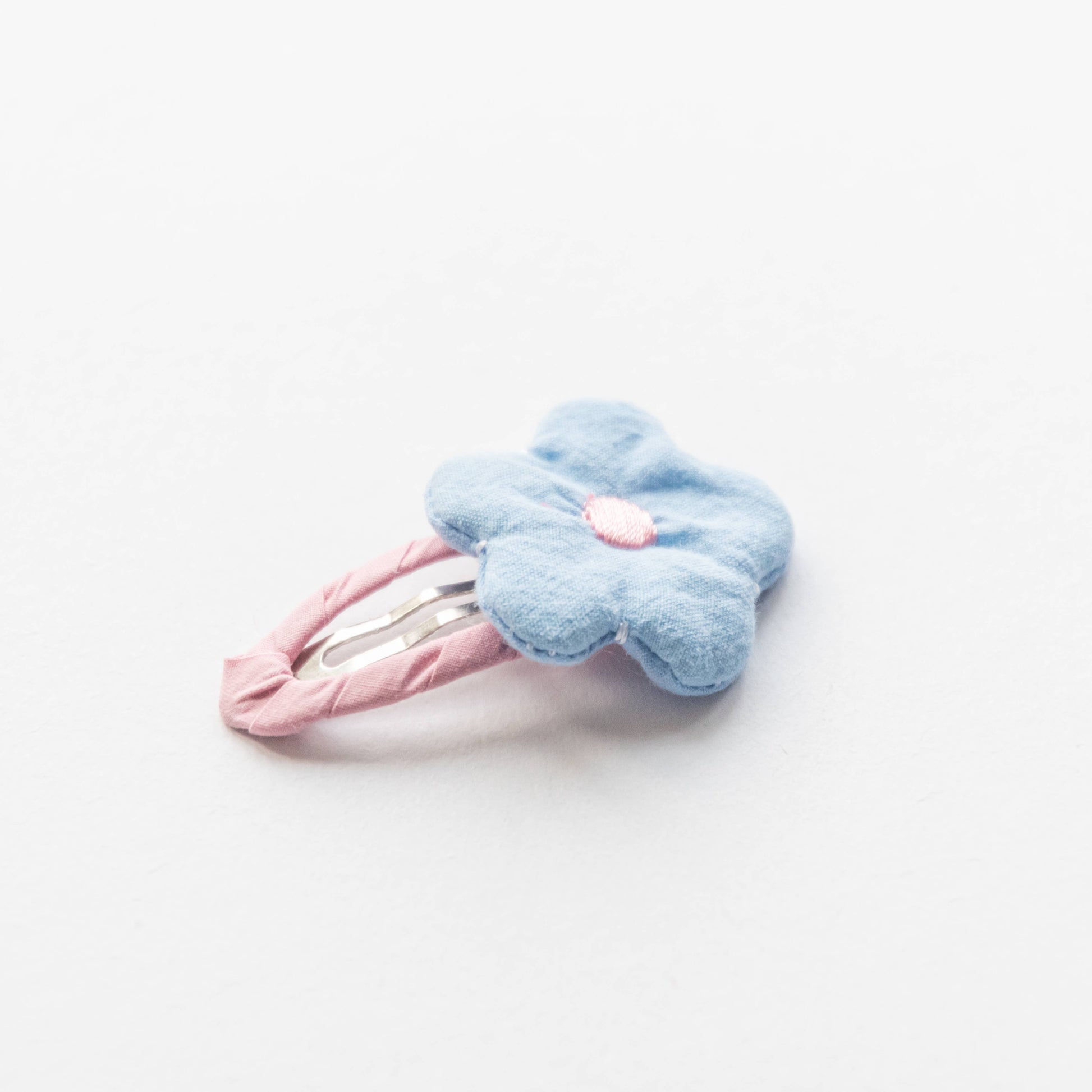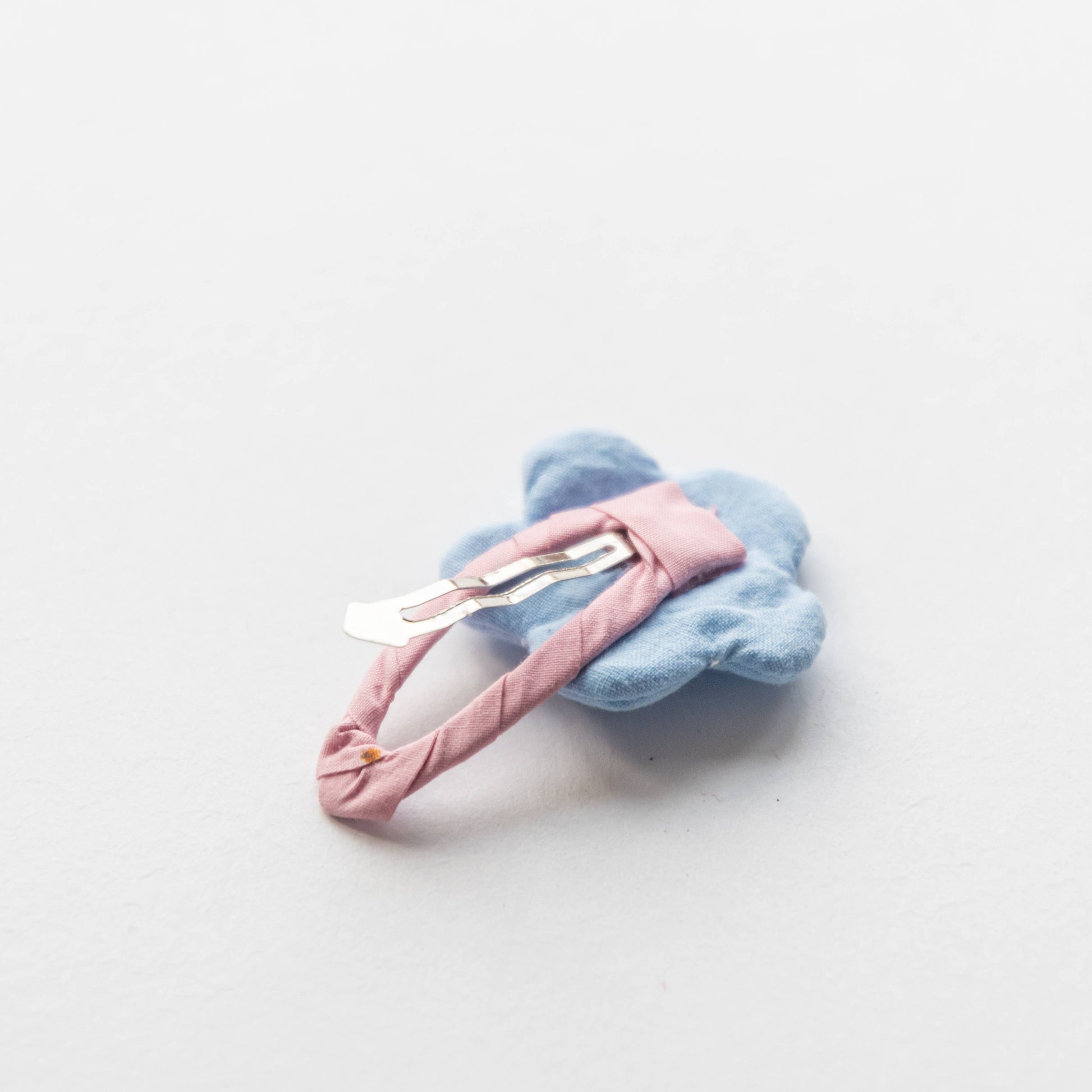 - This hair clip adorned with its soft padded fabric and flower design, adding a fun and cozy touch to any hairstyle.