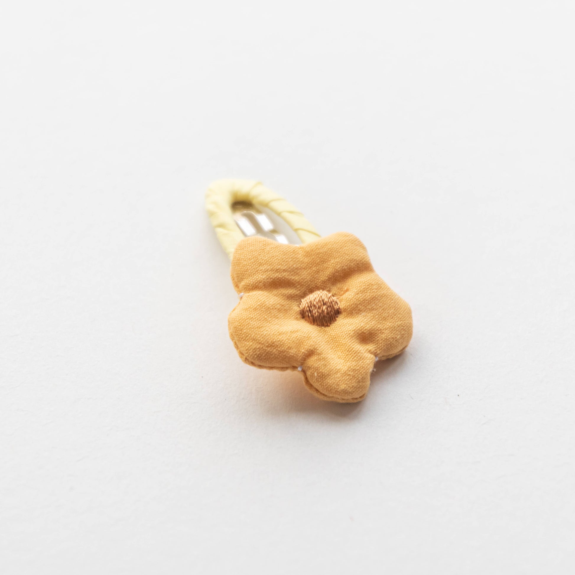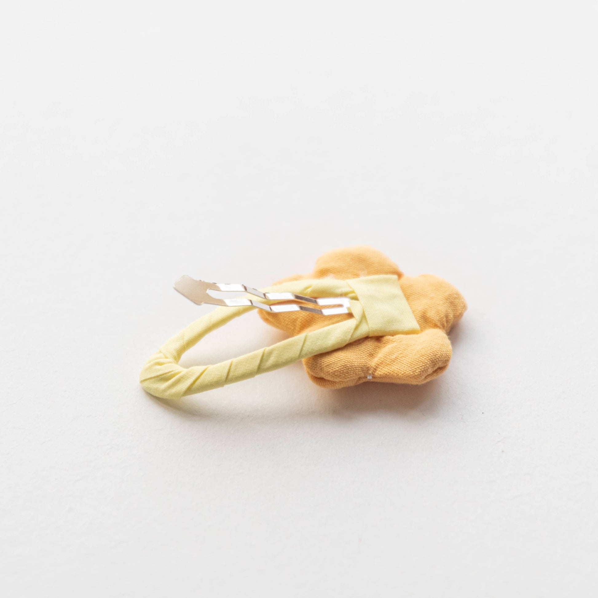 - This hair clip adorned with its soft padded fabric and flower design, adding a fun and cozy touch to any hairstyle.