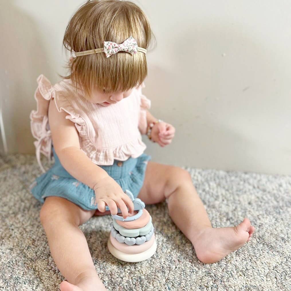 Our handmade mini headband set comes with 3 adorable little bows attached to a soft beige band. This set includes soft pink, pink and taupe flower bows that perfectly complement any of your little one's outfits. Each little bow is 2.3 inches long.