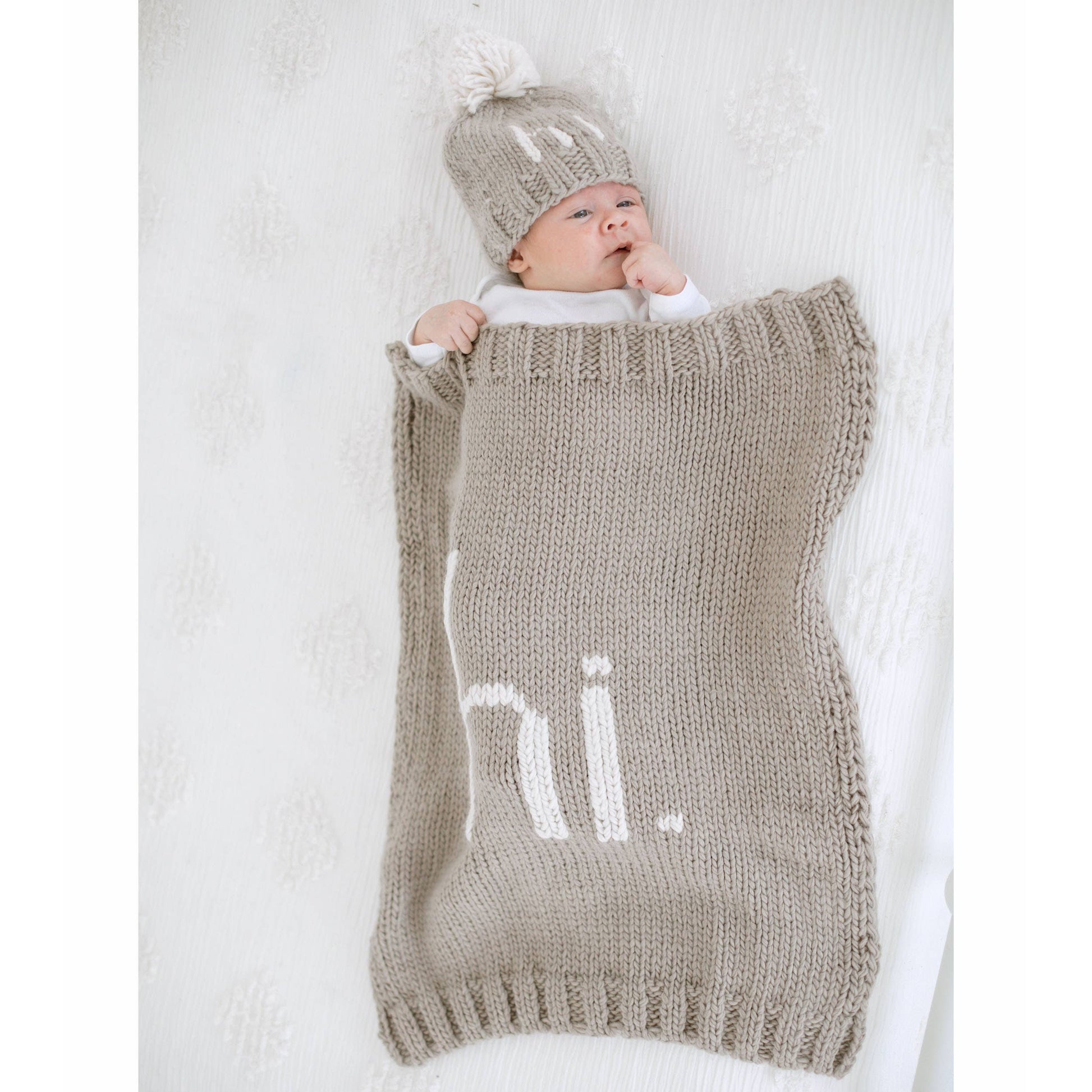 Say hello to the world with this adorable pebble (greige) blanket, hand knit from soft Icelandic Acrylic yarn. The word "hi." is carefully duplicate stitched in natural yarn, making it ideal for newborn photos and hospital stays. It’s also a lovely baby shower gift. Pair it with our matching hi. beanie for a complete look. Blanket measures 18" x 24".