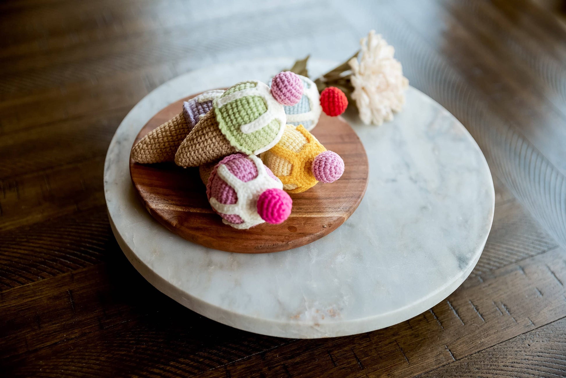 Our amigurumi-style ice cream toys are not only adorable but also uniquely designed to captivate young minds. The vibrant colors and playful textures provide a captivating sensory experience that keeps little ones entertained for hours. Treat your child to a one-of-a-kind gift that fosters creativity, learning, and endless joy.