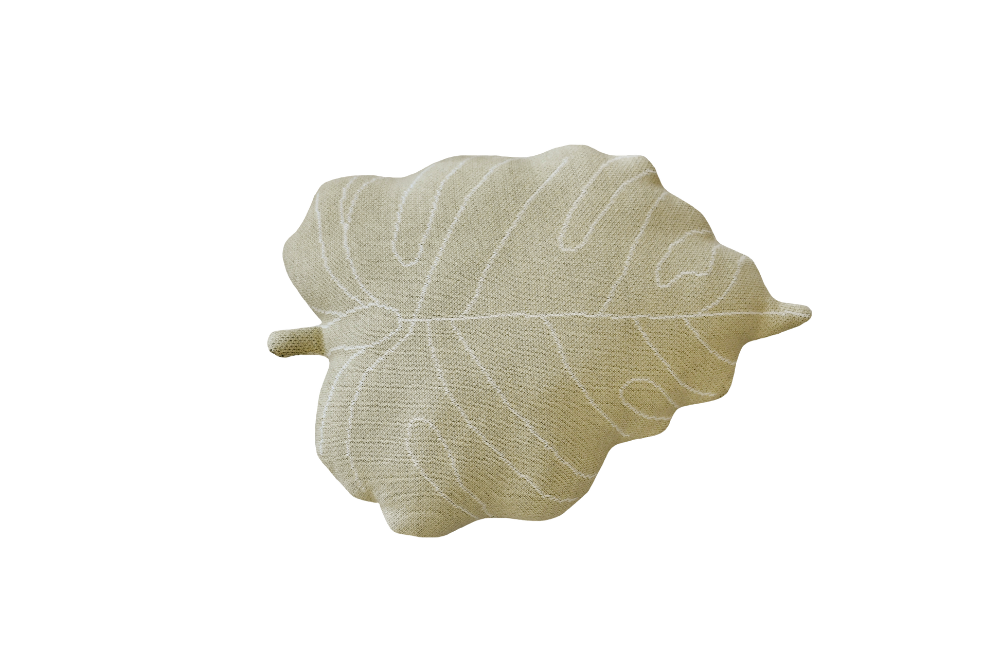 Knitted cushion Baby Leaf Olive: 100% cotton Filler: 100% polyester / 11" x 1' 4"