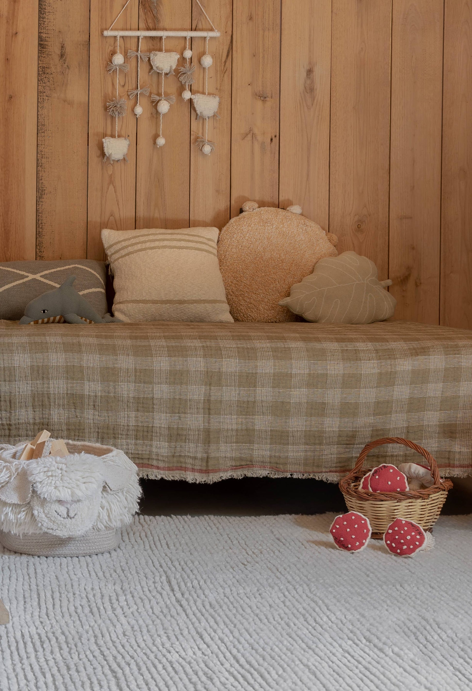 The Monstera leaf turned into a throw pillow of powdery colors that make it easy to combine. Made in soft cotton knit and machine-washable – including the filler –, this throw pillow will add a special touch both to the living room or nursery, and a botanical vibe.