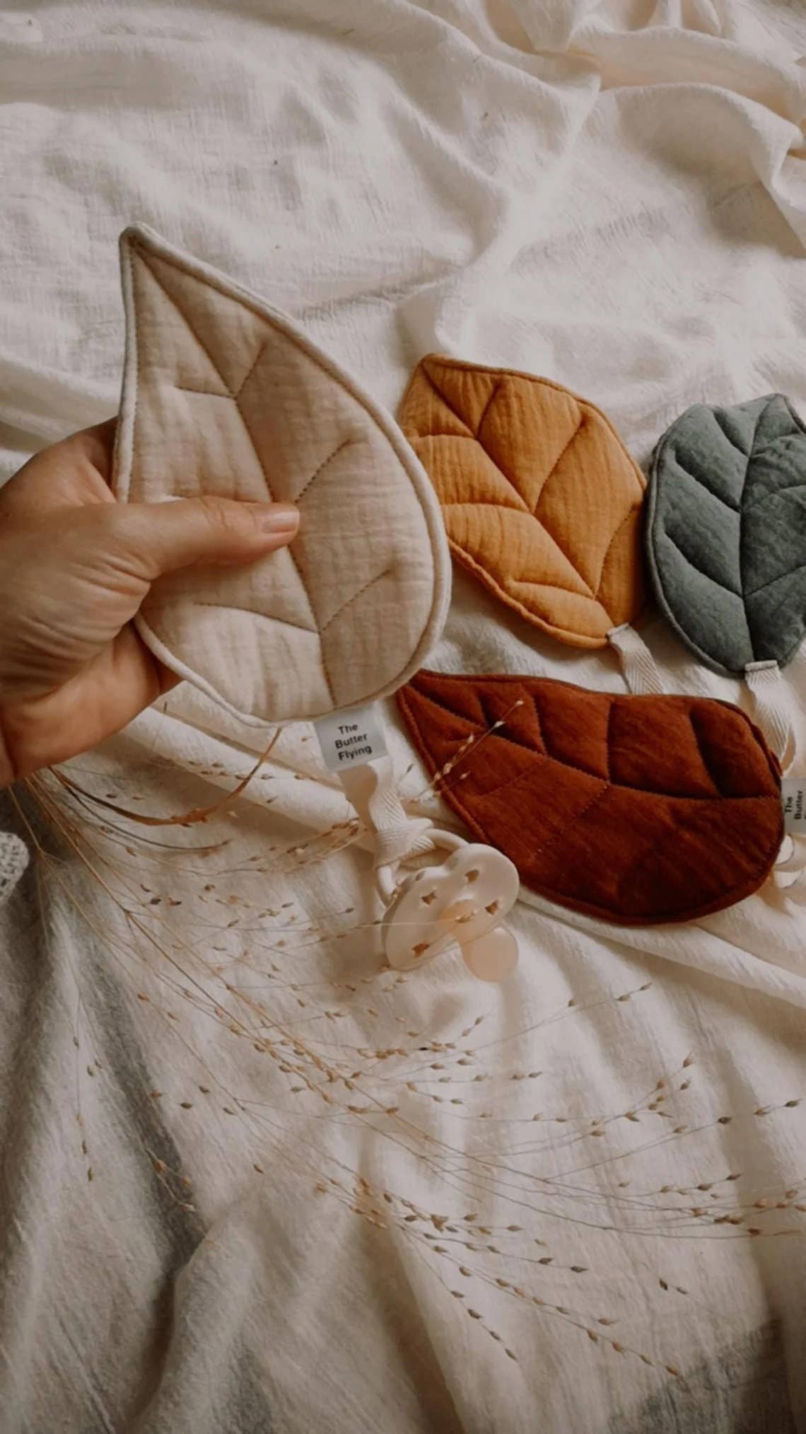 Simplify your life as a new mom with this pacifier clip. The leaf-shaped pacifier clip is handmade from soft, lightly padded organic muslin. The bohemian pacifier holder is available in four different colors, and each one is gender-neutral. The fabric pacifier holder is part of our sustainable parenting collection, so while it's organic, it's easy to wash and also an essential accessory.