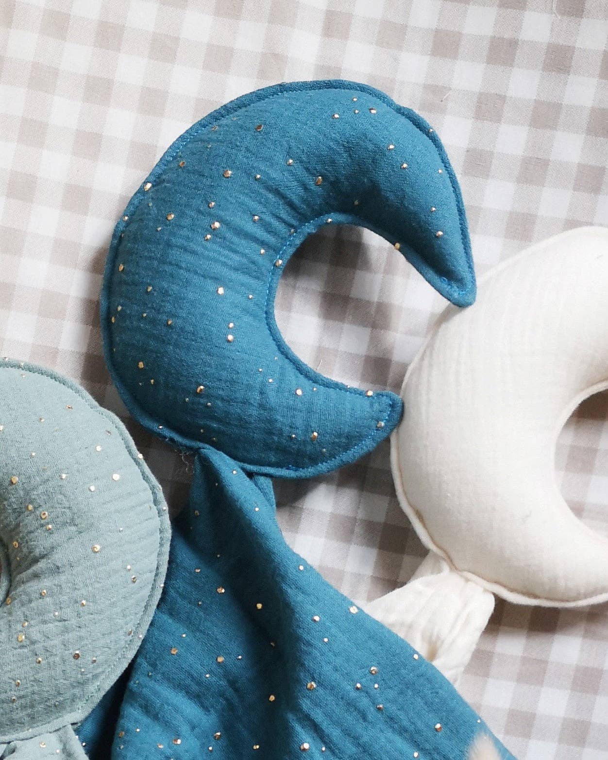 Moon comforter - Baby security blanket: NAVY WITH GOLD DOTS