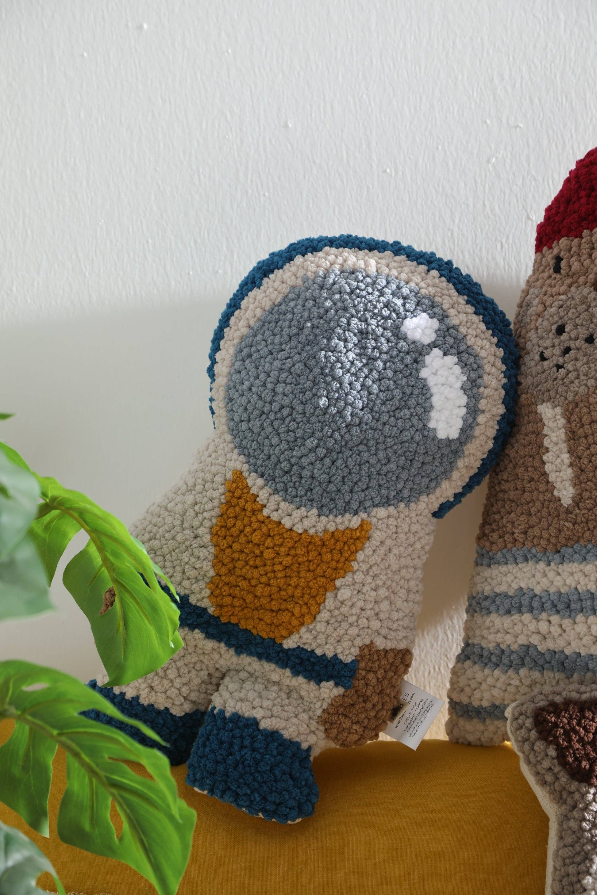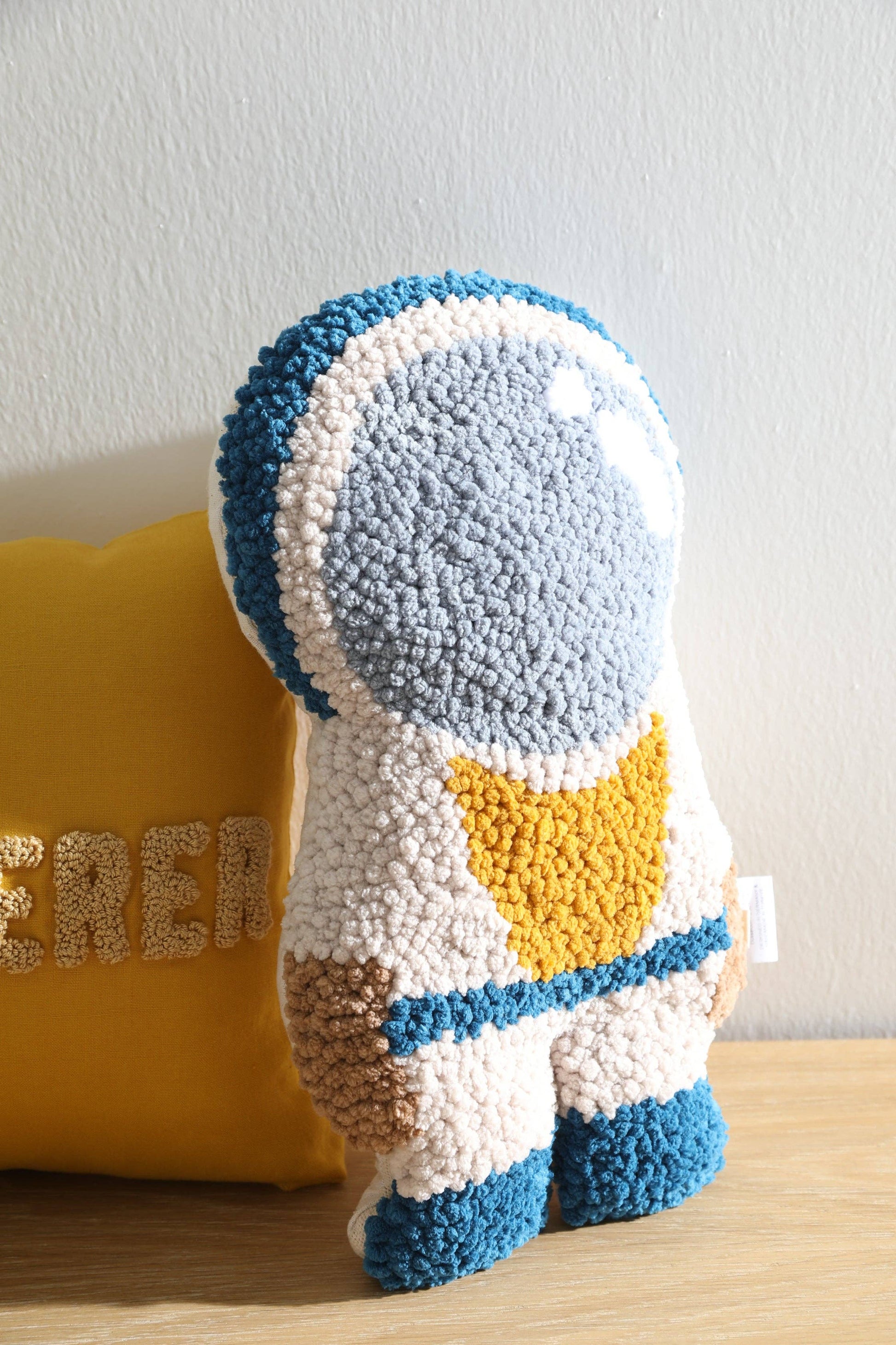 Unser handgefertigtes NOVA Astronautenkissen wird mit der Stanznadeltechnik hergestellt. Die Vorderseite besteht aus weichem Mikropolyestergarn und bietet eine fühlbare, kuschelige Oberfläche, die Kinder gerne anfassen. Die Rückseite besteht aus natürlichem Leinenstoff, der einen warmen und erdigen Kontrast bildet.