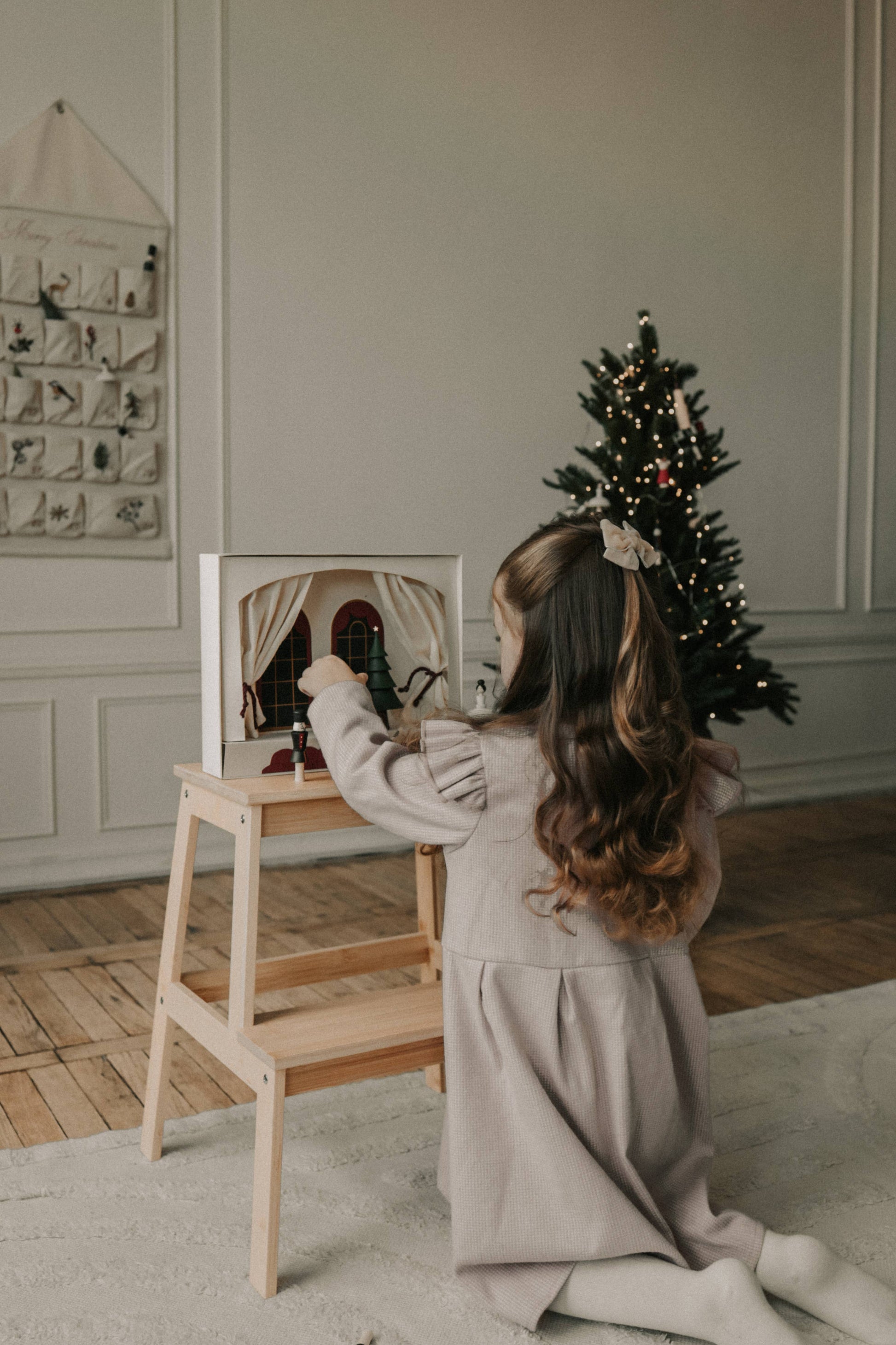 The curtains are made of cotton fabric and glued to the box. The toys are made of linden, covered with acrylic paints and painted by hand: therefore, the faces and details of the figures may differ slightly from those in the photo.