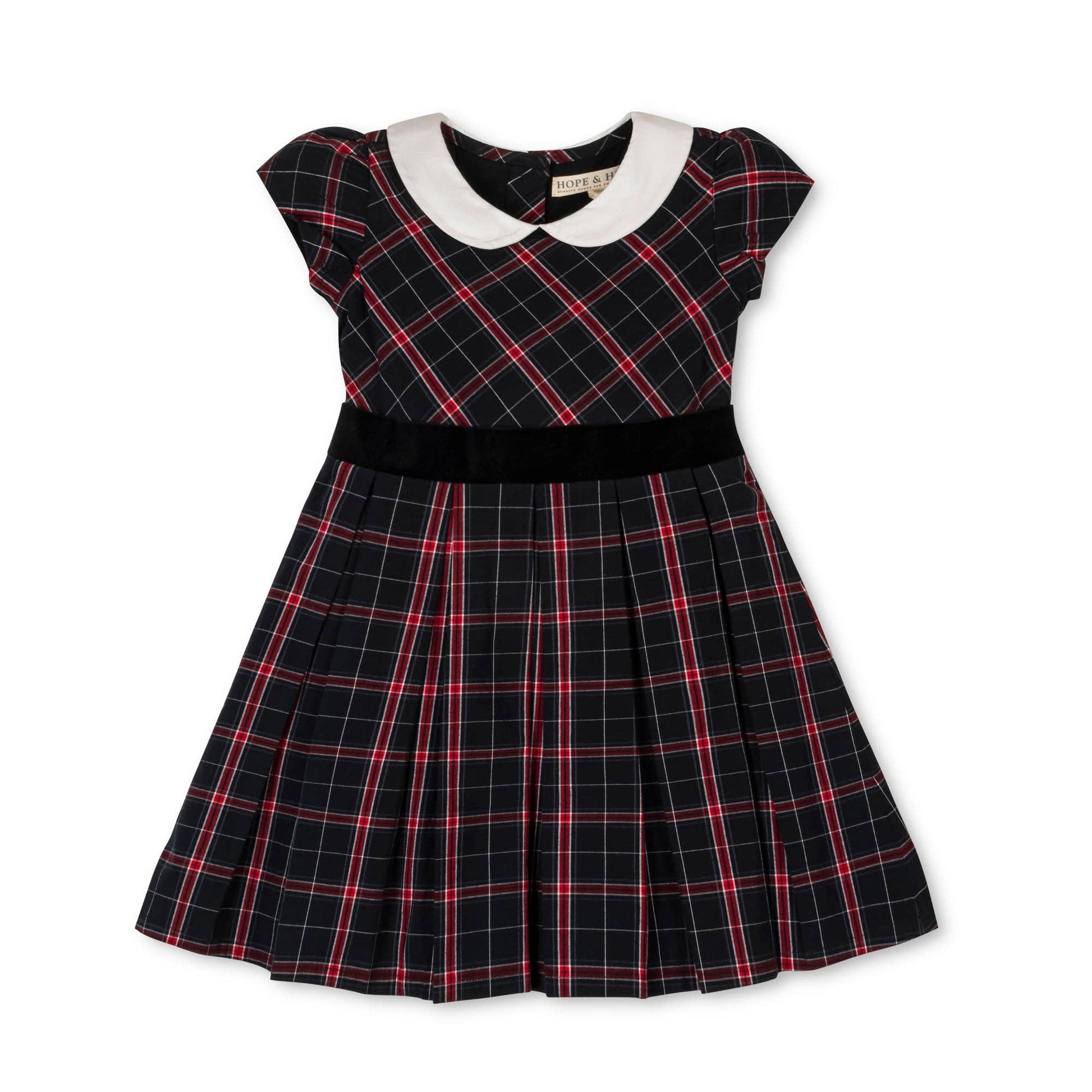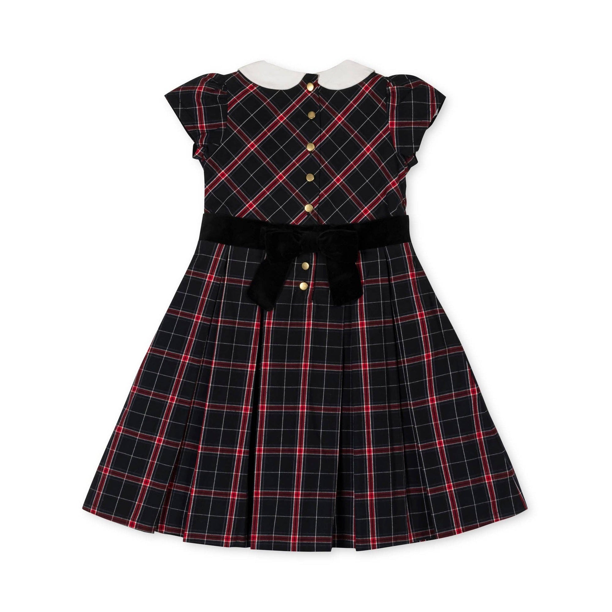 Made in crisp organic cotton stretch poplin and featuring a classic silhouette, this pretty dress will be your girl's go-to piece for picture time. Features flattering cap sleeves, a peter pan collar, and velveteen trim at the waist sash and bow. Gold button closure down the center back for a bit of shine.