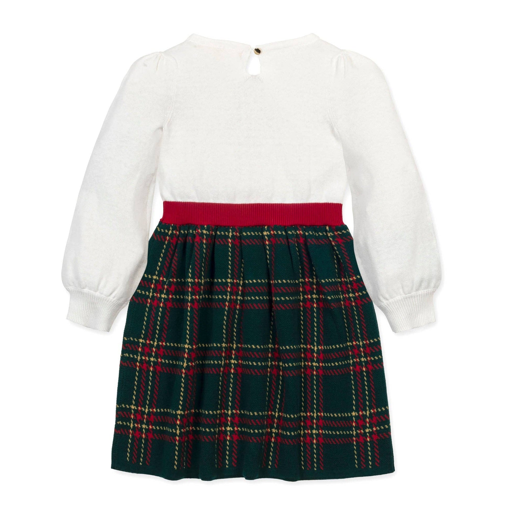Organic Skater Sweater Dress with Bow: London Intarsia / 2T