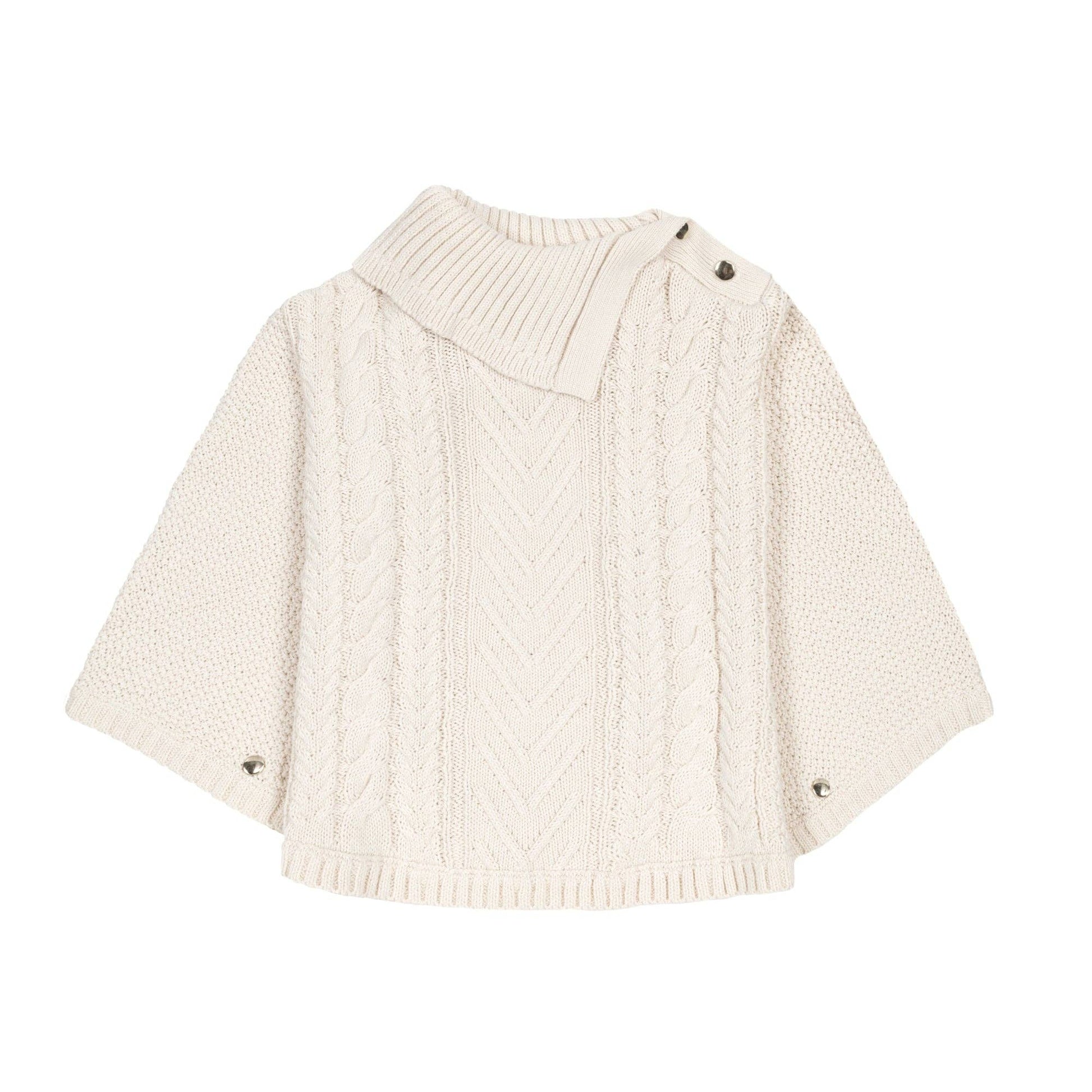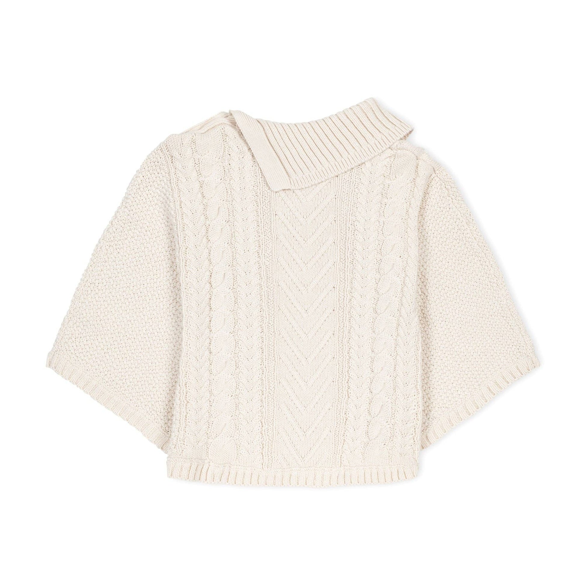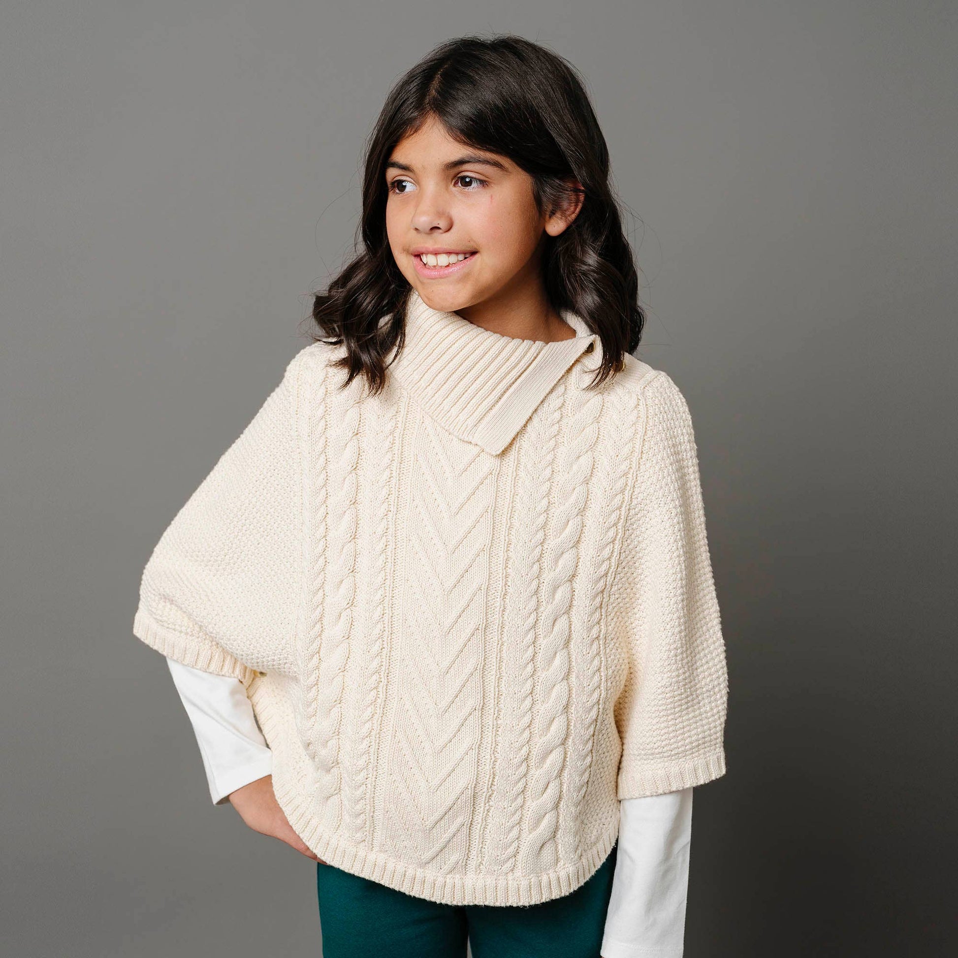 Organic Split Collar Sweater Cape: Ivory Center Cable / XX-Small