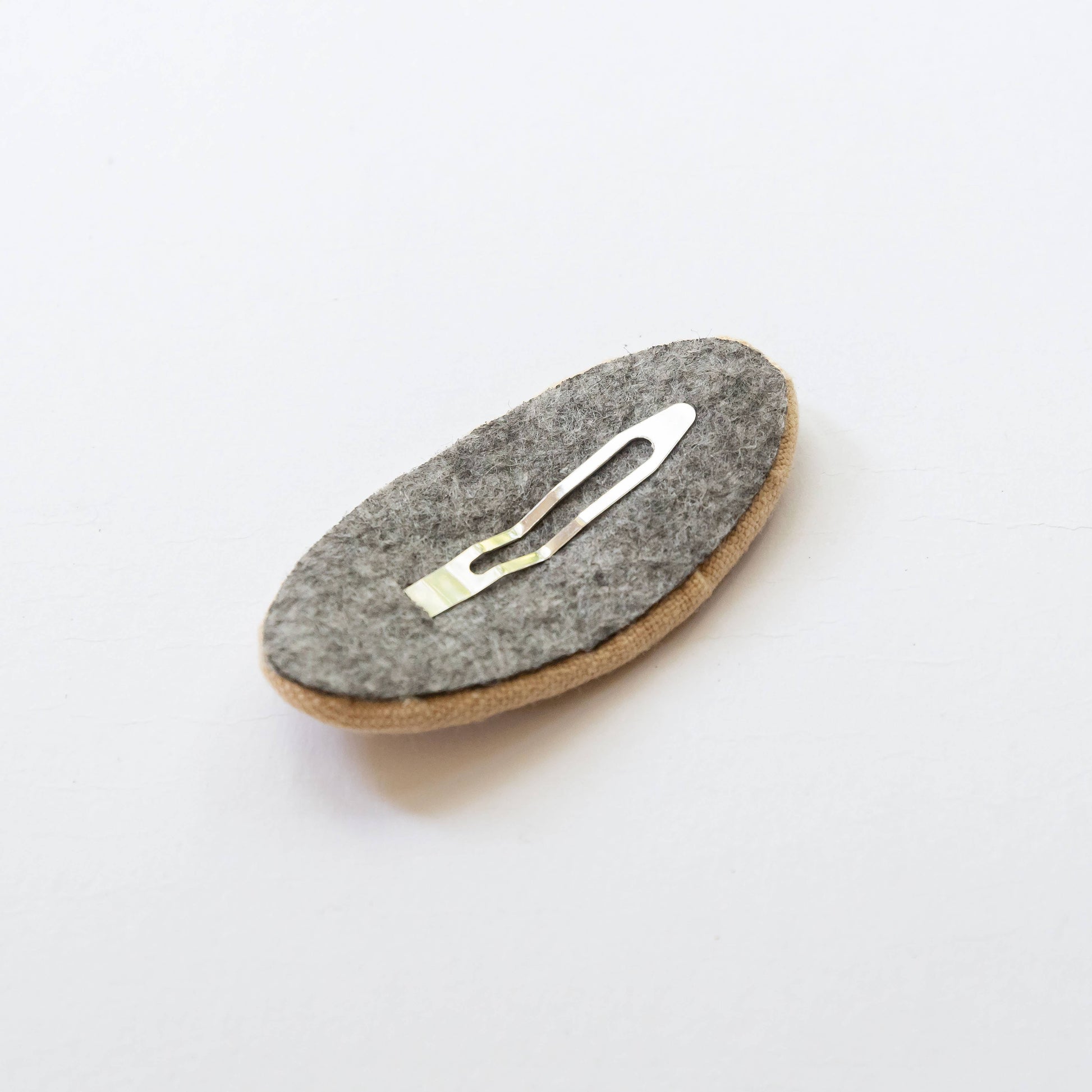 Oval Embroidered Floral Snap Hair Clips | Light Pink & Beige