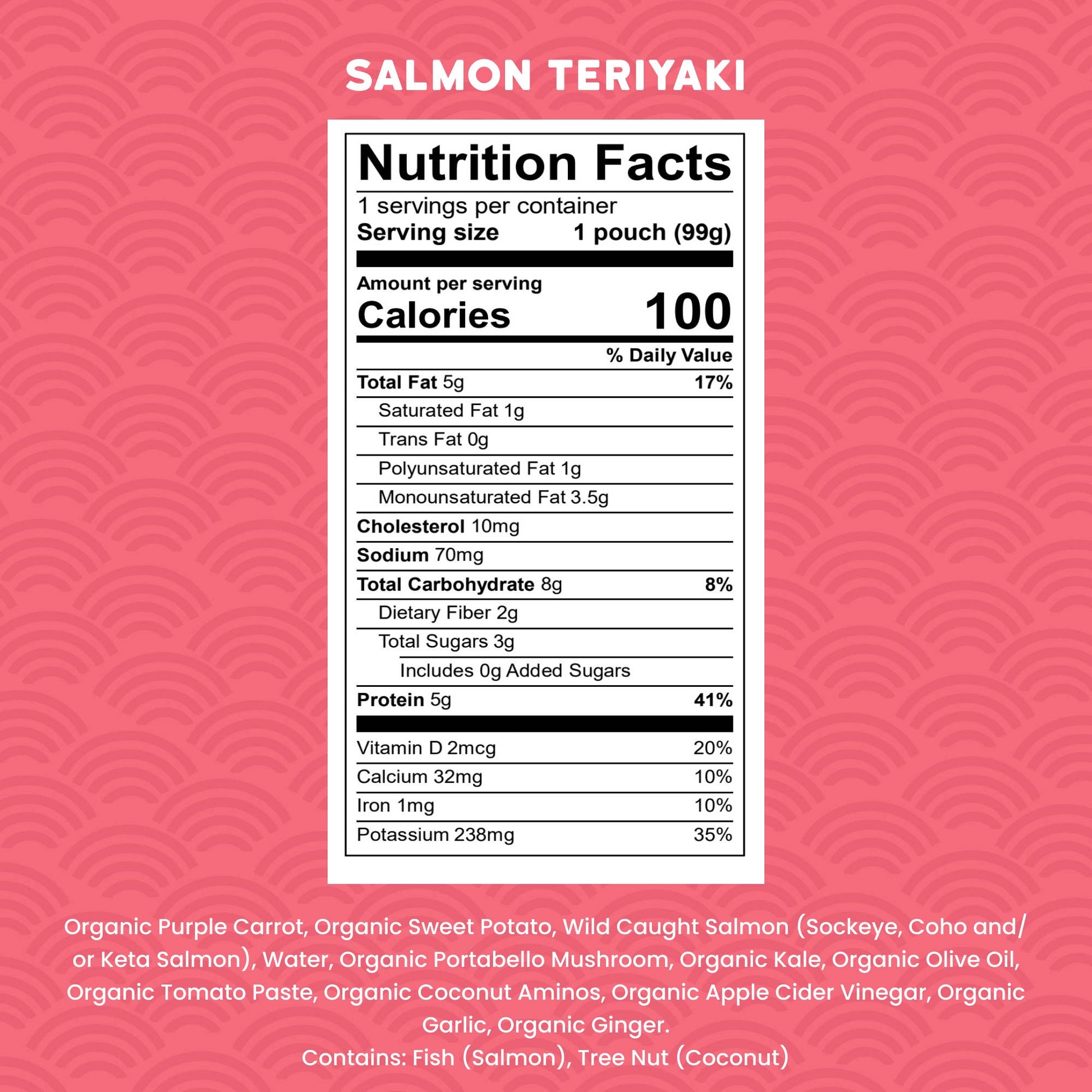 Introducing our Wild Caught Salmon Teriyaki baby food pouch which offers a taste of Japanese-inspired cuisine tailored to young palates, ensuring your little one gets nourishment from our organic ingredients while being introduced to global flavors in every bite. We've carefully blended wild-caught salmon baby food with organic sweet potatoes and purple carrots, all enveloped in a delightful teriyaki sauce made from premium coconut aminos and a touch of herbs and spices. A nutritious and flavorful choice for your baby's culinary journey!