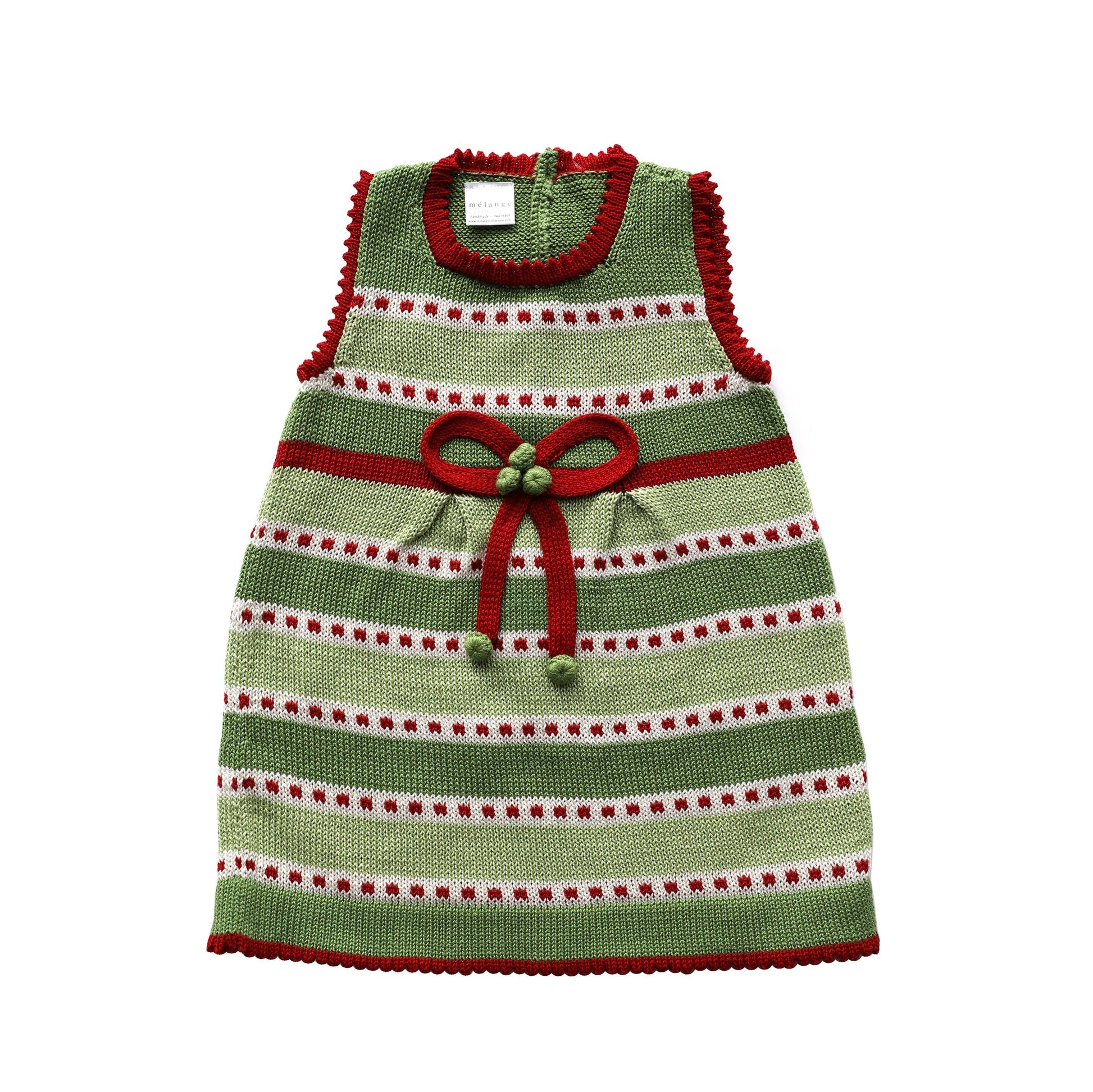 Hand-knit, striped dress with bow. Coordinates with Bow Cardigan (KC779).