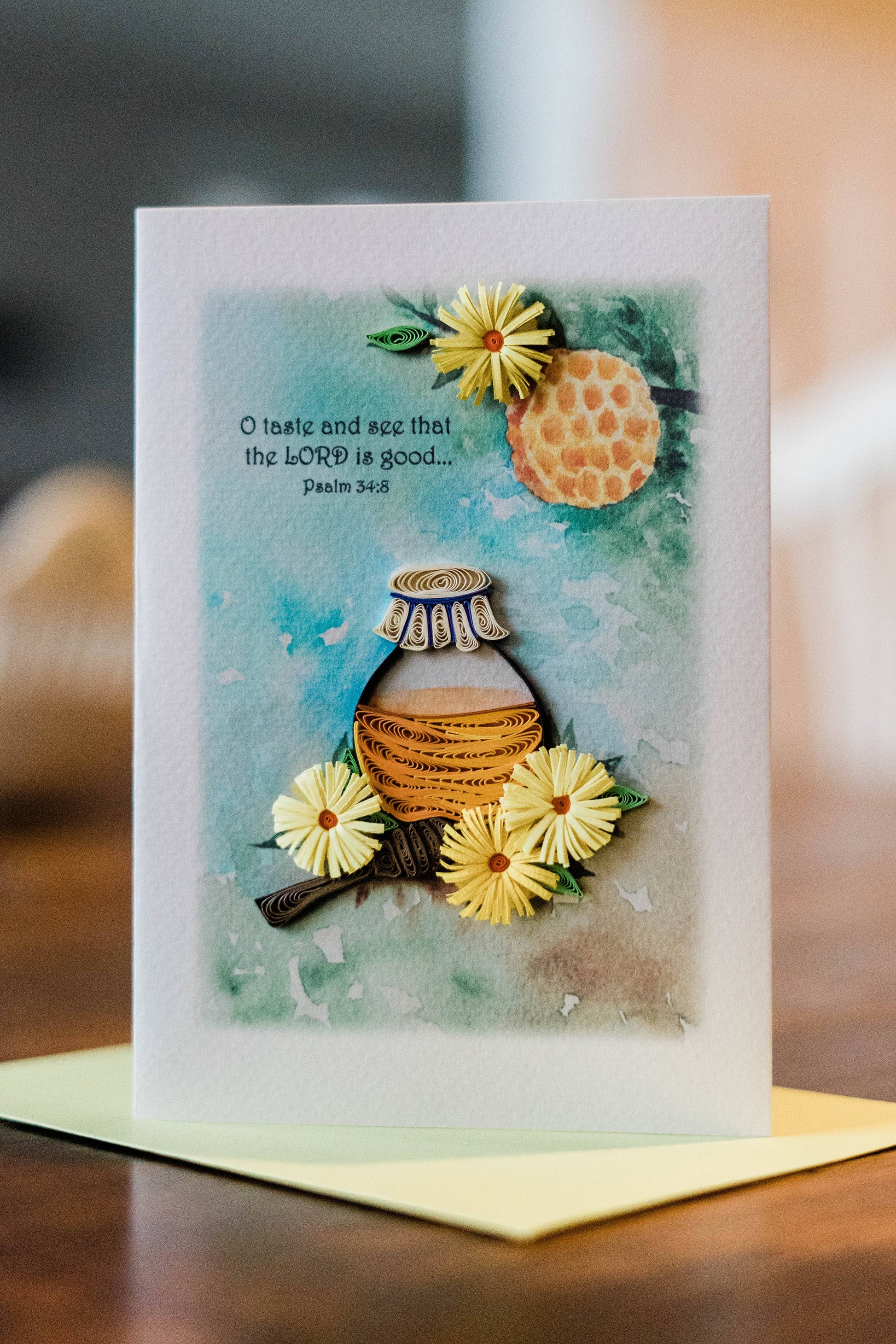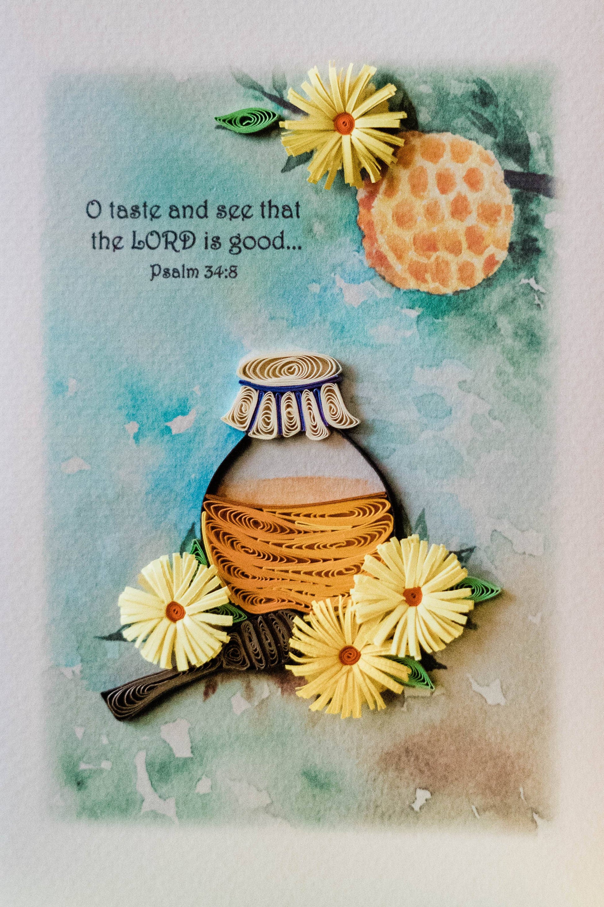 Encourage and uplift with this cheerful card! The text reads: "O taste and see that the LORD is good..." Psalm 34:8.