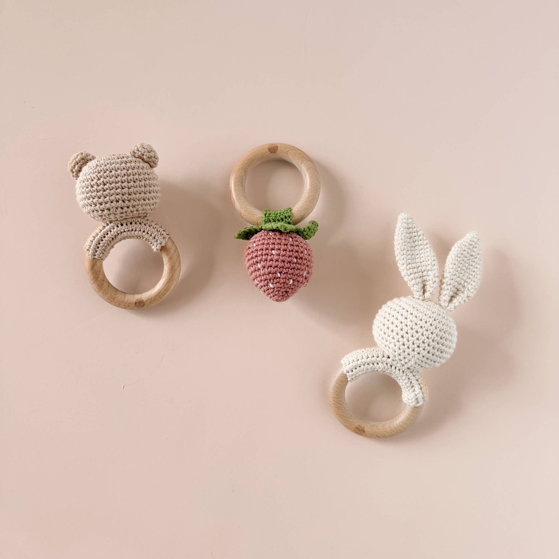 Teether Strawberry Pink Crochet Rattle Baby Toy Spring