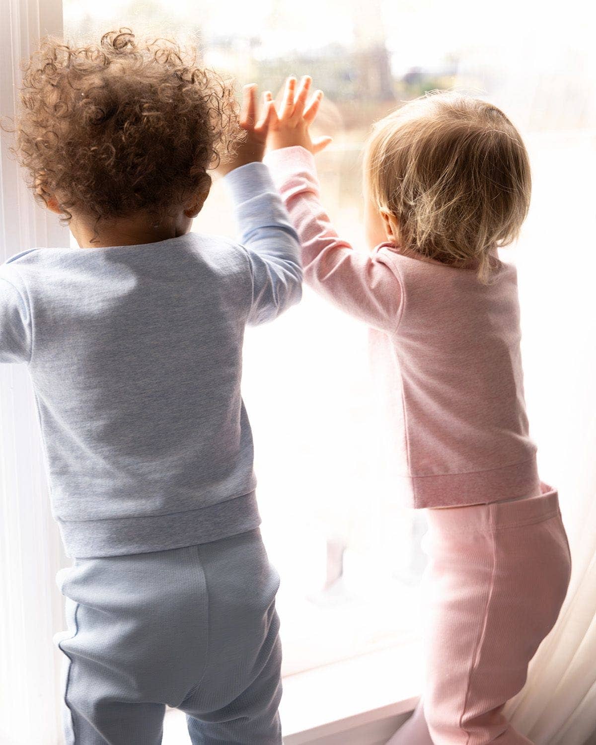 He may not be ready to ollie, but he can romp to his heart's content in our skateboard-inspired set. Both the fleece pullover top and the pull-on rib-knit leggings come in a luxe cotton-rich blend for cozy (yet breathable) comfort. The cute skateboarder graphic -- complete with embroidered board -- adds a whimsical touch.