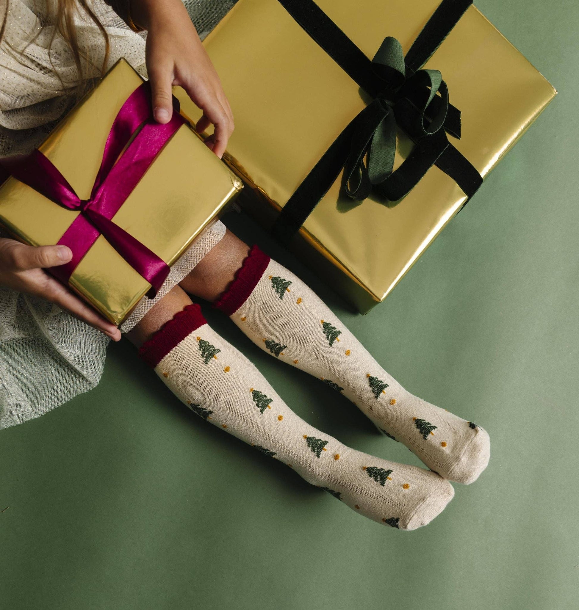Tree Farm Scalloped Knee Socks: 1.5-3 YEARS